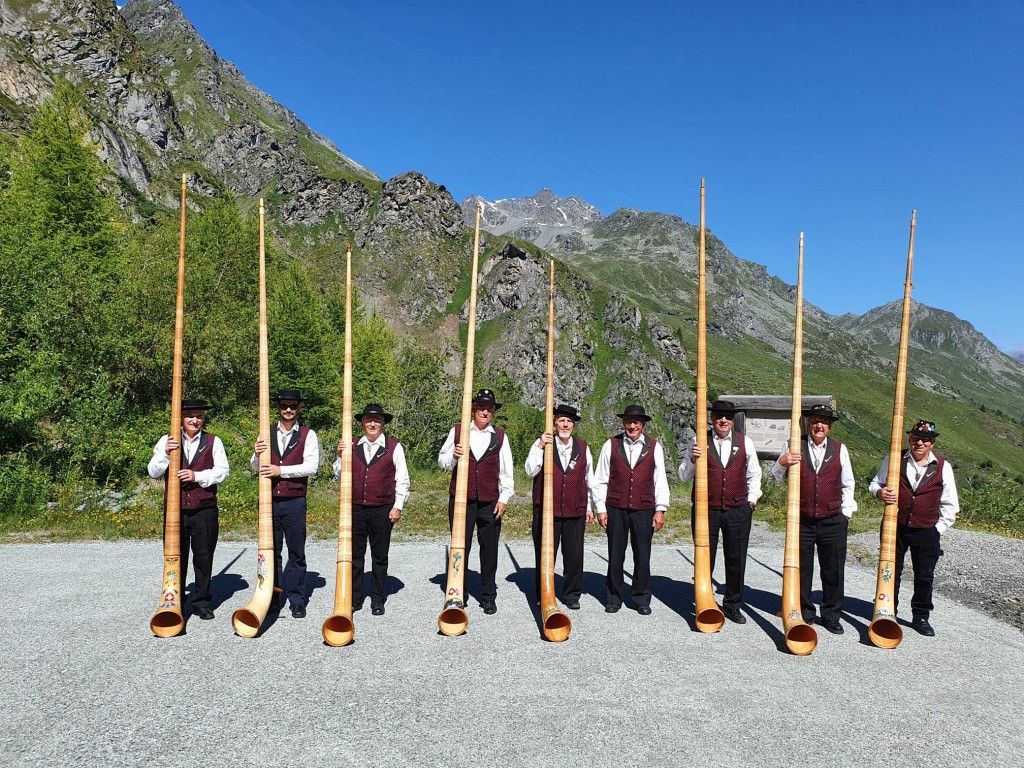 Fondé il y a bientôt 40 ans, le groupe se compose de 12 musicien-ne-s valaisan. Le cor des Alpes dégage un son qui instaure le respect, l’intensité et l’écho. Cet instrument d’envergure fait partie de toutes les fêtes traditionnelles suisses !